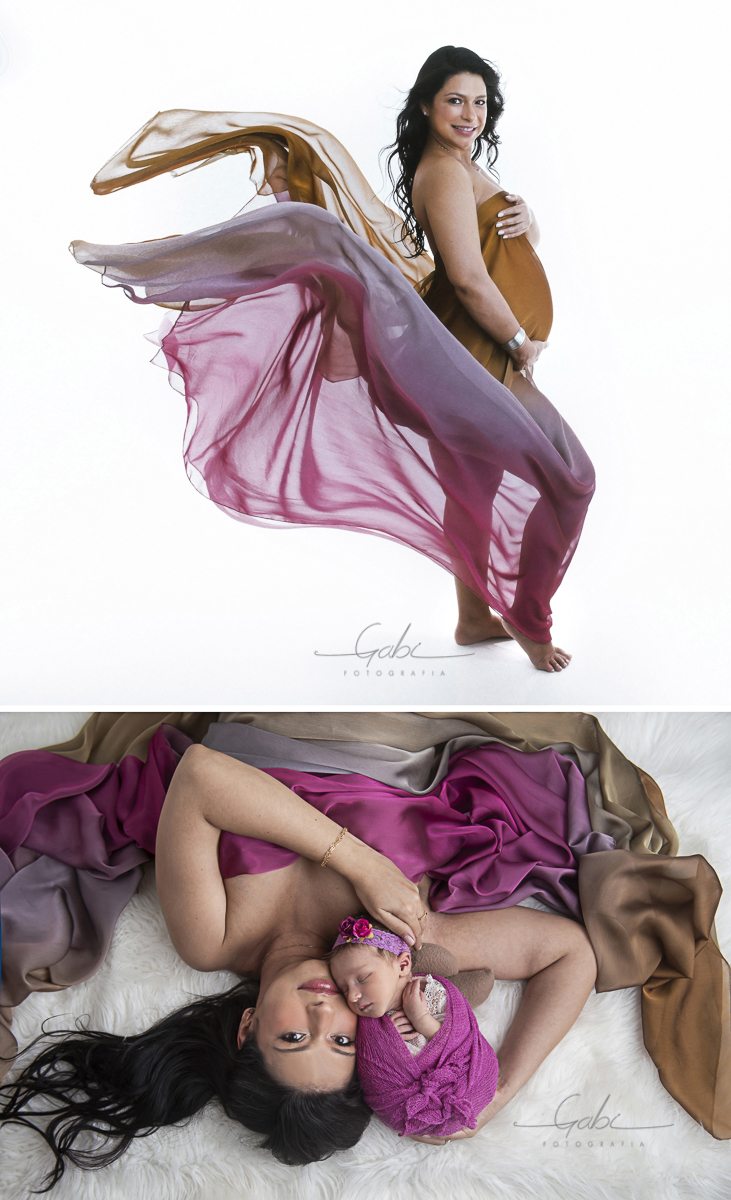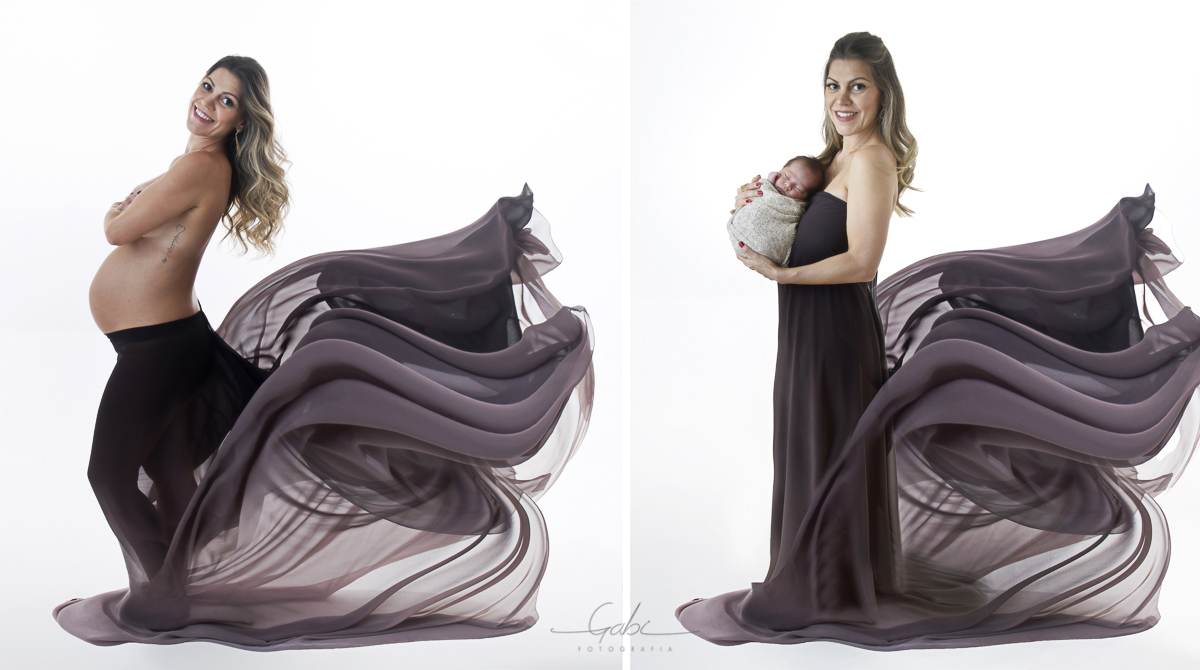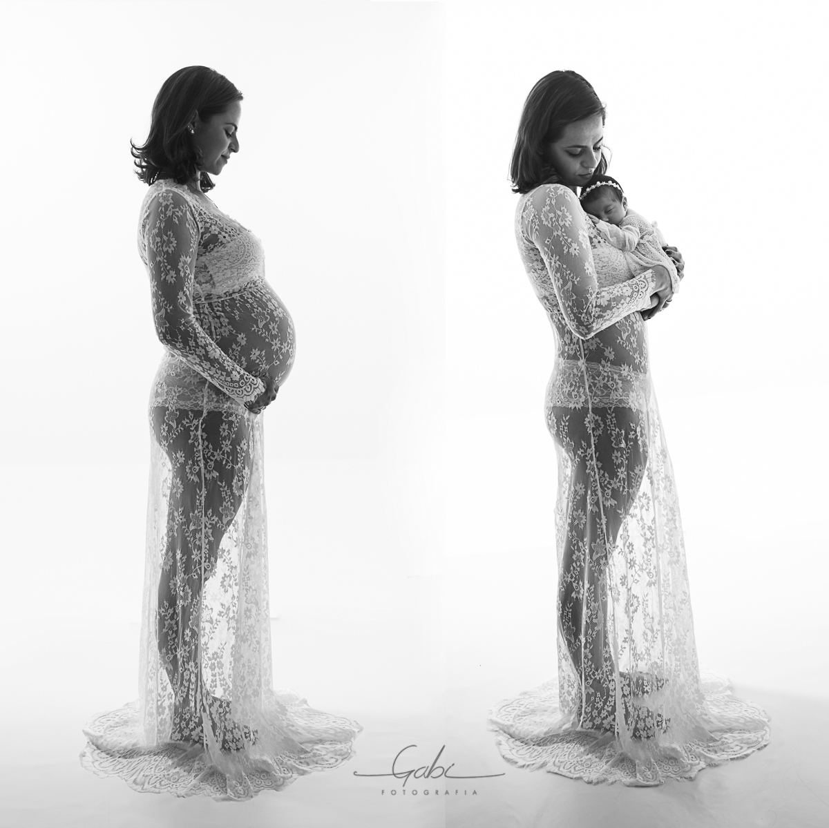O mesmo figurino utilizado nos dois ensaios: Ensaio Gestante e Ensaio Newborn